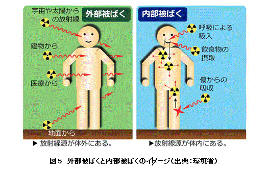 (2) 被ばくには外部被ばくと内部被ばくがあること。