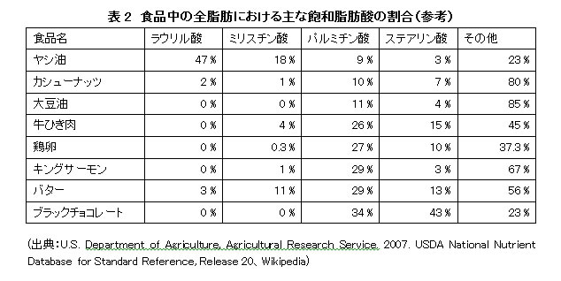 注1) 表の水色着色脂肪酸は「飽和脂肪酸」、白色は「不飽和脂肪酸」